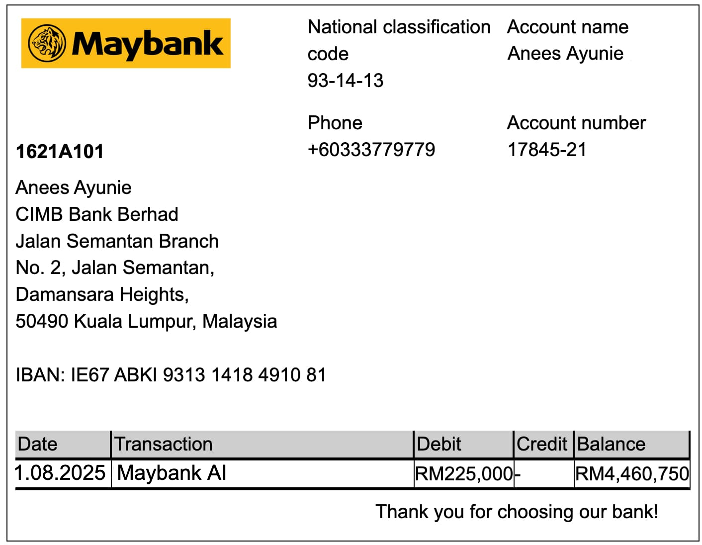 Since then, Anees has been spending money on handbags without a second thought. She now has RM4,460,750 in her account.